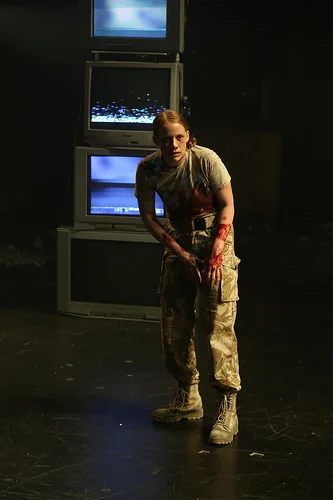 Rigel as the First Witch in 'Macbeth' at Northern Stage. Directed by Stephen Brown-Fried. Set design by Bill Clarke. Photo by Rob Strong.